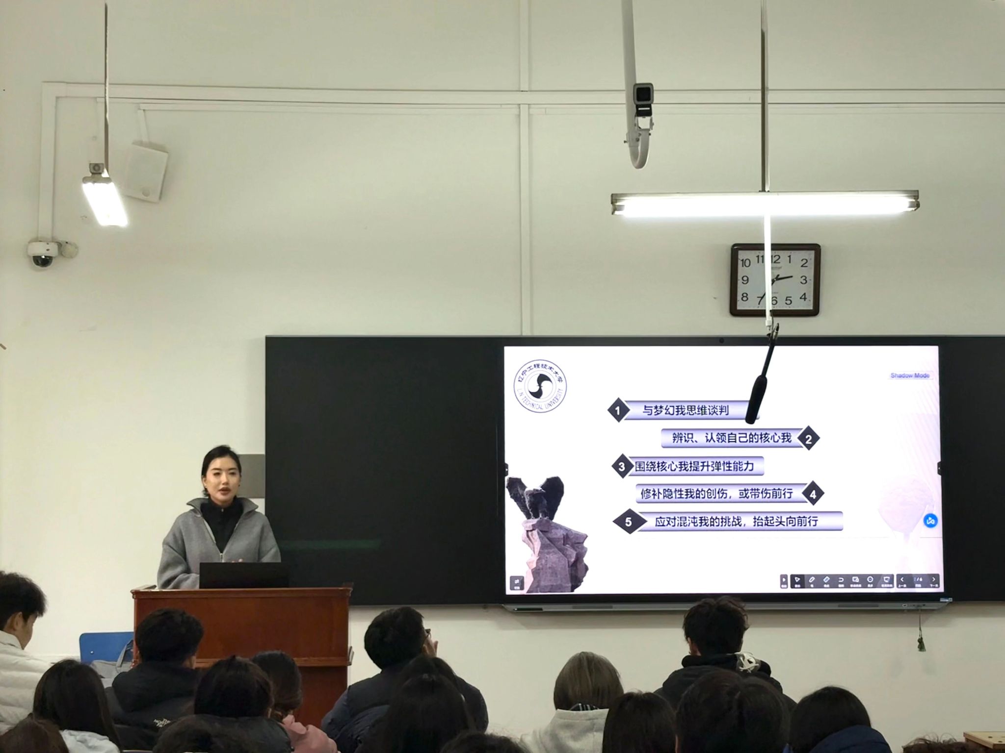 殷小童老师以《挺膺担当 青马筑梦》为主题,从“清晰认知筑牢内在成长根基”、“自我修复积蓄前行力量”和“直面挑战展现完整自我”三个方面展开论述,为青年学生骨干锚定成长方向、锤炼过硬本领提供了深刻指引。最后,她勉励广大体育学子要以理想铸魂、以担当赋能、以奋斗逐梦,让青春在全面建设社会主义现代化国家的火热实践中绽放绚丽之花。