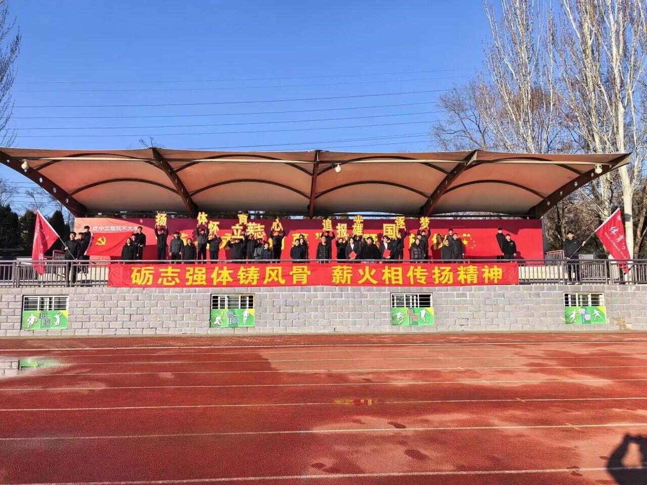 仪式上,学院学生代表以《传承英雄精神,争做时代新人》为主题进行演讲,深情讲述英模人物的感人事迹与崇高品格,号召全体同学以英雄为榜样、以使命为担当,将爱国情、报国志融入日常学习与训练之中,用实际行动践行新时代青年的责任与担当。随后,同学们齐声演唱歌曲《星河追梦》,歌声铿锵有力、昂扬向上,既唱出了青年学子追逐梦想的蓬勃朝气,也展现出体育学院学子奋勇争先、强国有我的坚定信念。